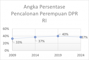 Data pencalonan perempuan menunjukkan peningkatan yang signifikan dari pemilu tahun 2009 hingga tahun 2019, naik 7% (dari 33% menjadi 40%), hal ini bisa terjadi karena di tahun 2014 dan 2019 Peraturan Komisi Pemilihan Umum (PKPU) berhasil memaksa partai politik untuk memenuhi ketentuan pencalonan minimum 30% perempuan. Partai politik akan mendapatkan konsekuensi jika tidak berhasil memenuhinya, yaitu tidak bisa berkompetisi pada daerah pemilihan (dapil) yang tidak memuat pencalonan minimum 30% perempuan.